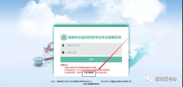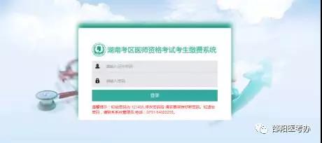 點(diǎn)擊上圖箭頭所指圖片跳轉(zhuǎn)到《湖南考區(qū)醫(yī)師資格考試考生繳費(fèi)系統(tǒng)》登錄頁面: