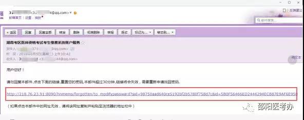 ⑤考生登錄預(yù)留郵箱,找到郵件中的密碼重置鏈接。
