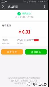 9.支付完成后,手機(jī)微信頁面將返回支付成功的信息如下,至此本次繳費(fèi)完成。