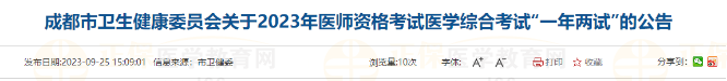 四川考區(qū)成都市2023年中醫(yī)執(zhí)業(yè)醫(yī)師醫(yī)學(xué)綜合考試“一年兩試”報(bào)名公告