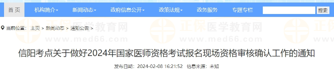 河南省信陽考點(diǎn)關(guān)于做好2024年中醫(yī)執(zhí)業(yè)醫(yī)師資格考試報(bào)名現(xiàn)場資格審核確認(rèn)工作的通知