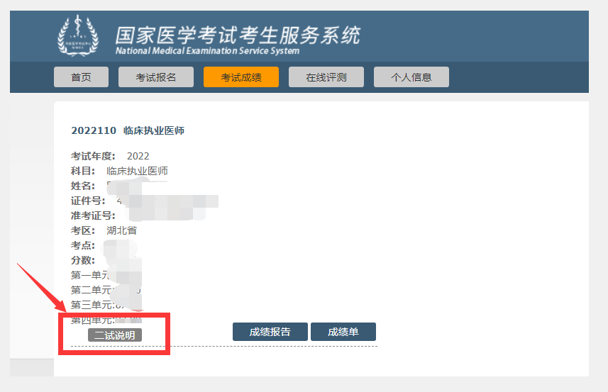 3、考生點(diǎn)擊“考試成績(jī)”下方的“二試說(shuō)明”。