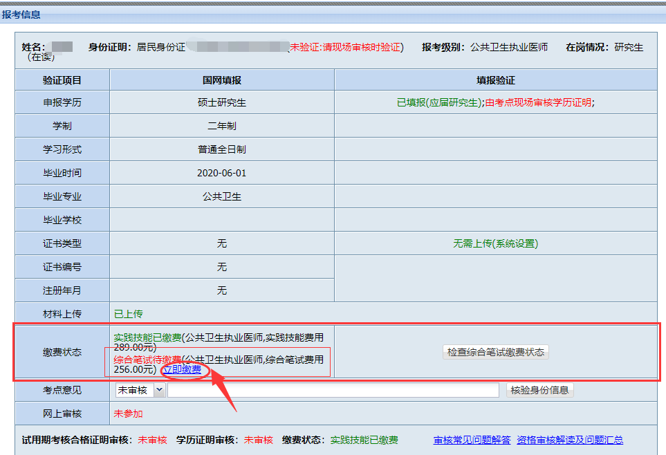 2、在省網(wǎng)“繳費(fèi)狀態(tài)”欄點(diǎn)擊“綜合筆試二試待繳費(fèi)”后的“立即繳費(fèi)”字樣,按提示完成網(wǎng)上繳費(fèi)。