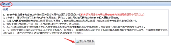 5.上傳完畢一個(gè)學(xué)歷證明后,可再次點(diǎn)擊“添加學(xué)歷信息”按鈕上傳其他學(xué)歷證明。