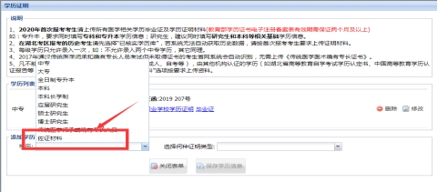 2.首先選擇自己的學(xué)歷 ,然后選擇對(duì)應(yīng)的學(xué)歷真實(shí)性證明材料。