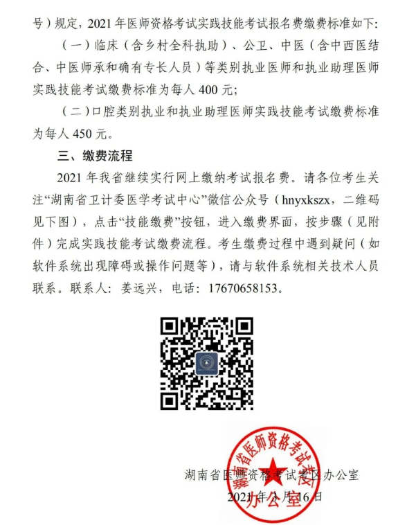 湖南省2021年中醫(yī)執(zhí)業(yè)醫(yī)師實踐技能考試繳費的通知