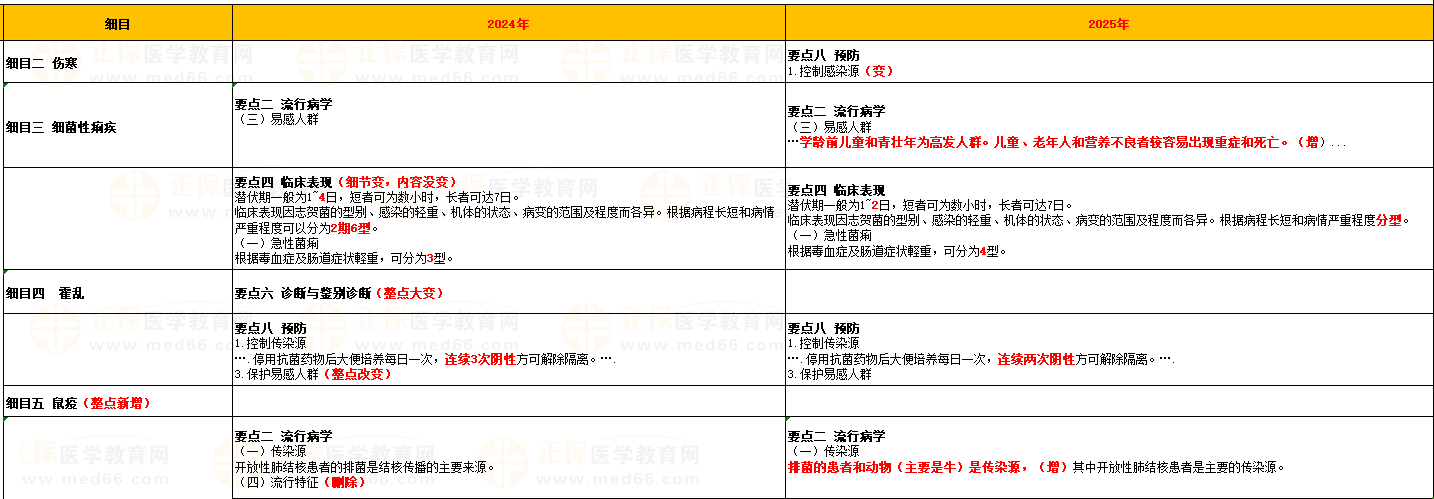 2025年國家中醫(yī)執(zhí)業(yè)醫(yī)師資格考試《傳染病》官方教材已發(fā)布,醫(yī)學教育網專業(yè)老師為大家梳理變動內容如下: