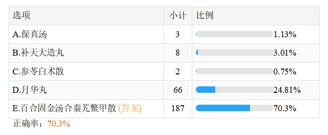 關(guān)于“中醫(yī)醫(yī)師練習(xí)題:治療肺癆之虛火灼肺證,應(yīng)首選的方劑是”的相關(guān)內(nèi)容,相信很多正在備戰(zhàn)2023年中醫(yī)執(zhí)業(yè)醫(yī)師考試的考生十分關(guān)注,此題在摸底測(cè)試50題(點(diǎn)擊參加測(cè)試>>)中正確率僅為70.3%,建議大家及時(shí)復(fù)習(xí),牢固掌握相關(guān)知識(shí)點(diǎn)!