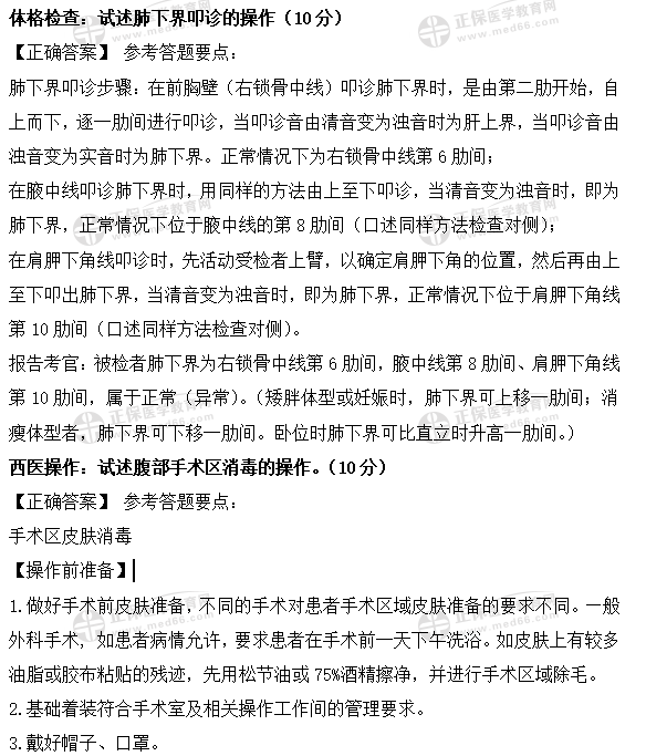 “中醫(yī)執(zhí)業(yè)醫(yī)師實(shí)踐技能考試題:體格檢查/西醫(yī)操作/西醫(yī)答辯”的內(nèi)容由醫(yī)學(xué)教育網(wǎng)整理,更多醫(yī)考信息、備考資料請(qǐng)關(guān)注醫(yī)學(xué)教育網(wǎng)中醫(yī)執(zhí)業(yè)醫(yī)師欄目。