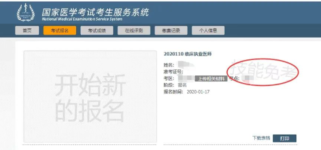 第三步:在考生個(gè)人報(bào)名界面中,點(diǎn)“考試報(bào)名”即可查看技能考試結(jié)果:“未通過(guò)”、“技能通過(guò)”、“技能免考”。