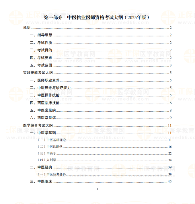 2026中醫(yī)執(zhí)業(yè)醫(yī)師考試大綱在線預覽