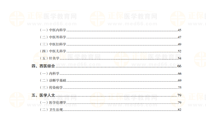 經(jīng)典、中醫(yī)臨床、西醫(yī)綜合、醫(yī)學人文共五部分。