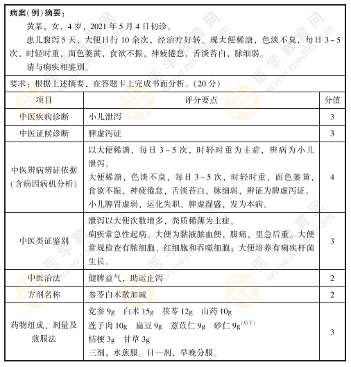 2022年中醫(yī)技能病例分析練習(xí)題10號:黃某,女,4歲,2021年5月4日初診。
