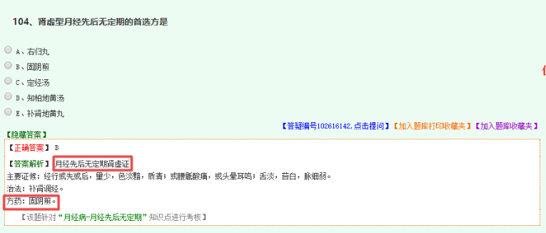 相關(guān)考點(diǎn)1:月經(jīng)先期腎氣虛證的方劑;月經(jīng)先后不定期腎虛證的方劑