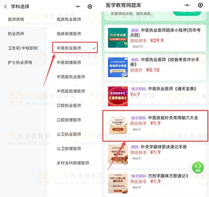 二、選擇報(bào)考類別,以中醫(yī)執(zhí)業(yè)醫(yī)師為例,選擇“技能針灸常用腧穴”資料