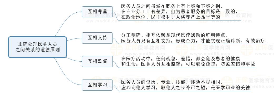 - · 2024中醫(yī)執(zhí)業(yè)醫(yī)師考試備考<醫(yī)學倫理學>重要知識點思維導圖:正確處理醫(yī)務人員之間關系的道德原則