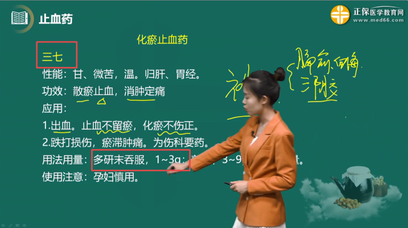 2023中醫(yī)執(zhí)業(yè)醫(yī)師考試考點(diǎn)8:三七的用法用量
