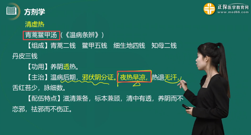 2023中醫(yī)執(zhí)業(yè)醫(yī)師考試考點(diǎn)14:夜熱早涼-青蒿鱉甲湯