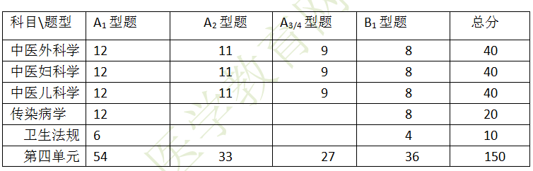 第四單元的科目重點(diǎn)出題點(diǎn)—臨床科目、難點(diǎn)。這一單元考察了中醫(yī)外婦兒科以及傳染病和衛(wèi)生法規(guī)。其中外婦兒各占40分,傳染病占到20分,衛(wèi)生法規(guī)10分。