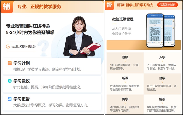 除此以外,高效定制班,為考生定制學(xué)習(xí)計(jì)劃,8大課程+16類題庫/資料+12大教學(xué)服務(wù)+9大社群服務(wù)。此班次比較適合0基礎(chǔ),想要一次性通過考試,自主學(xué)習(xí)能力差一些的學(xué)員學(xué)習(xí)。報名不過協(xié)議退費(fèi),考不過協(xié)議重學(xué)!