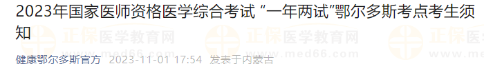 內(nèi)蒙古鄂爾多斯考點2023年中醫(yī)執(zhí)業(yè)醫(yī)師綜合筆試考試 “一年兩試”考生須知