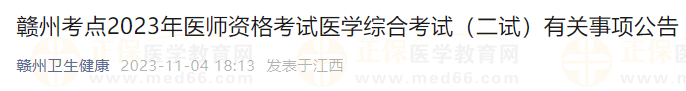 為確保贛州考點2023年醫(yī)師資格考試醫(yī)學(xué)綜合考試(二試)順利實施,現(xiàn)將有關(guān)事項公告如下。
