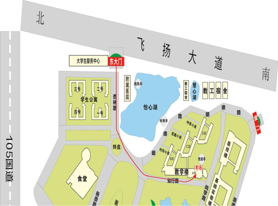 入場方向:北門及南大門(考生車輛),西側(cè)門為行人通道。(建議導(dǎo)航地址為贛南醫(yī)學(xué)院黃金校區(qū)第一教學(xué)樓)