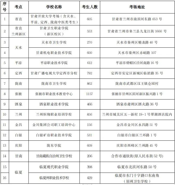1.由于考場(chǎng)沖突原因,武威考點(diǎn)全部考生合并至張掖考點(diǎn)參加考試;嘉峪關(guān)考點(diǎn)全部考生合并至酒泉考點(diǎn)參加考試;天水、平?jīng)?、定西、隴南中醫(yī)類(lèi)別考生統(tǒng)一調(diào)至省直考點(diǎn)甘肅開(kāi)放大學(xué)考場(chǎng)參加考試。