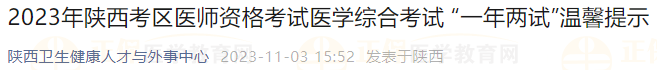 2023年陜西考區(qū)中醫(yī)執(zhí)業(yè)醫(yī)師醫(yī)學(xué)綜合考試 “一年兩試”溫馨提示