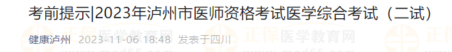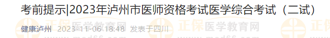 2023年瀘州市醫(yī)師資格考試醫(yī)學綜合考試(二試)將于11月11日在瀘州職業(yè)技術學院(瀘州市龍馬潭區(qū)長橋路2號)舉行。瀘州市醫(yī)師資格考試考點辦公室溫馨提示: