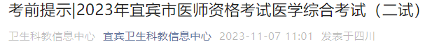 2023中醫(yī)執(zhí)業(yè)醫(yī)師“一年兩試”考試將于11月11日開考,四川宜賓考點官方考點發(fā)布了2023中醫(yī)執(zhí)業(yè)醫(yī)師二試考生須知,請各位考生及時查看,做好應(yīng)試準備!