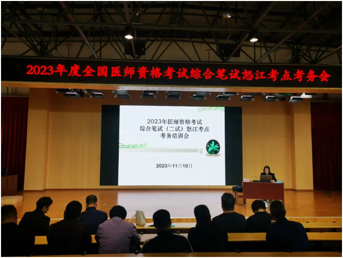 考前組織召開了2023年醫(yī)師資格考試醫(yī)學綜合考試(二試)云南考區(qū)怒江考點考務(wù)培訓會,扎實開展考務(wù)人員培訓,會上對所有考務(wù)工作人員、監(jiān)考人員、保密室值班人員等進行培訓并簽訂了《保密責任書》,周密部署考試工作,重點強化考風考紀,安全保密及應(yīng)急防控措施。
