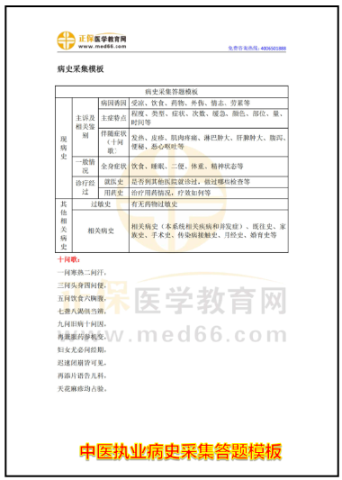 (中醫(yī)執(zhí)業(yè)病史采集答題模板部分內(nèi)容)