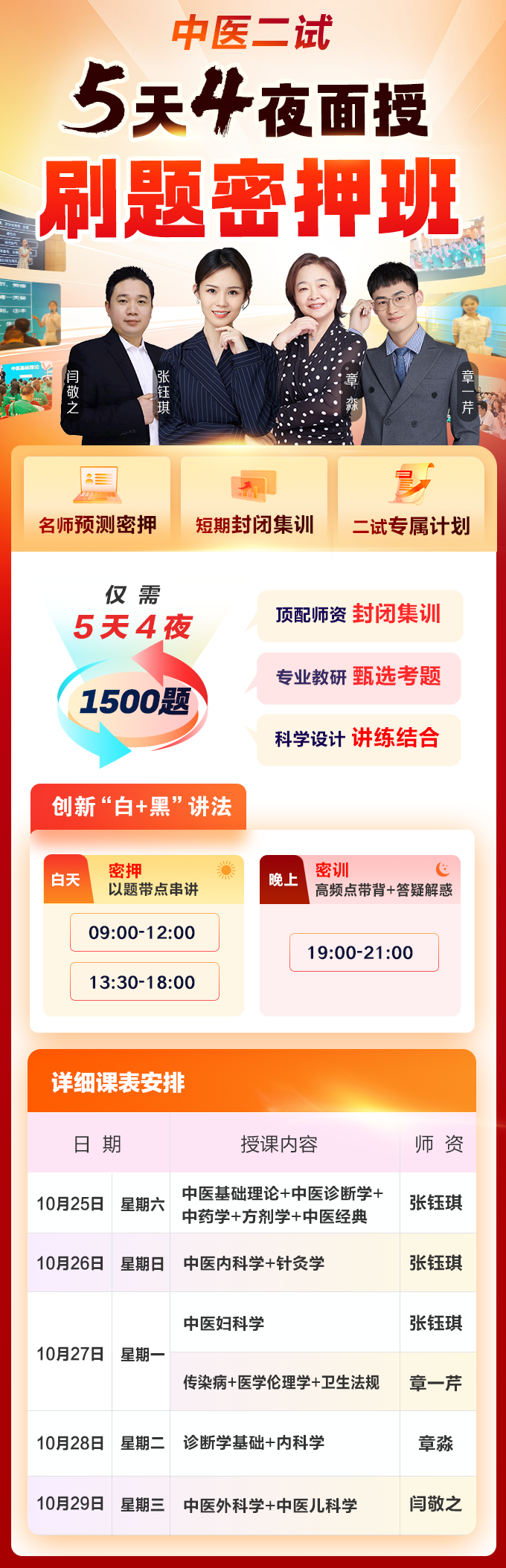 | 【面授】中醫(yī)執(zhí)業(yè)醫(yī)師-五天四夜刷題密押班 | 3980 | 已封班 |
