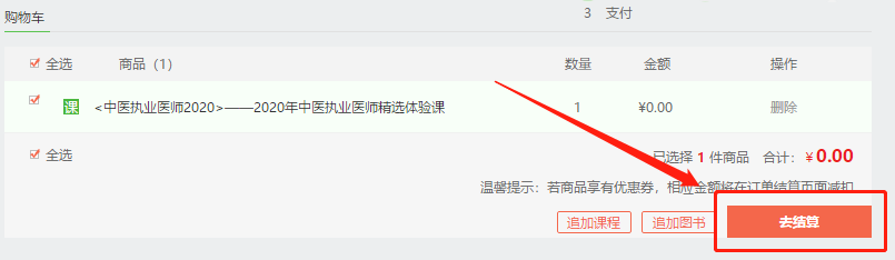 第一步、點(diǎn)擊“去結(jié)算”,完成訂單。
