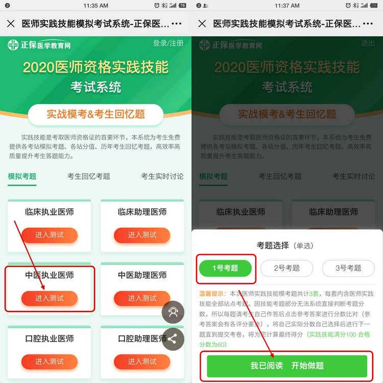 第二:選擇模擬試題-中醫(yī)執(zhí)業(yè)醫(yī)師-點(diǎn)擊進(jìn)入測(cè)試,就可以開(kāi)始做題練習(xí)啦!