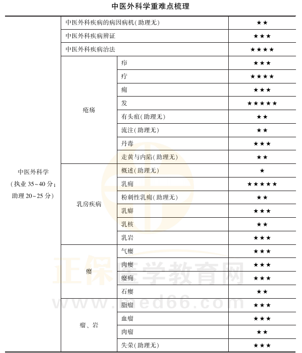 2021年中醫(yī)執(zhí)業(yè)醫(yī)師《中醫(yī)外科學(xué)》所有疾病對應(yīng)西醫(yī)病名一覽表