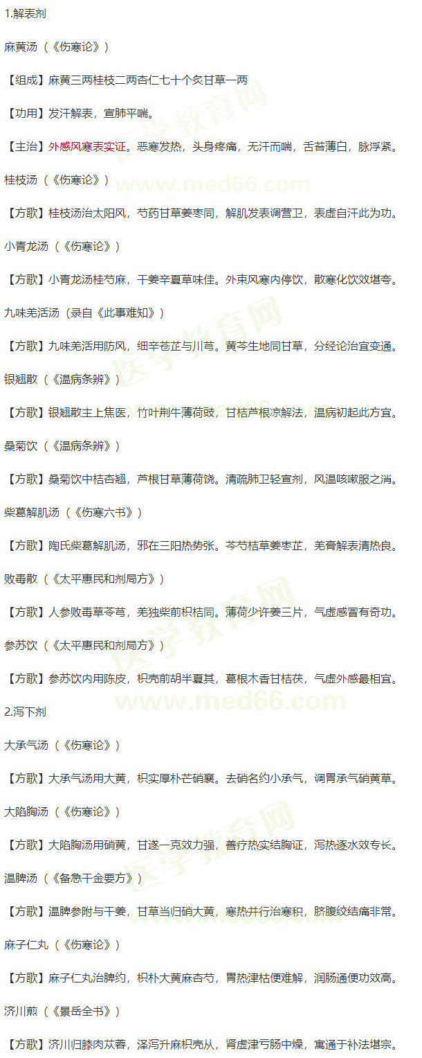 2021年中醫(yī)執(zhí)業(yè)醫(yī)師必考《方劑學(xué)》速記方歌匯總