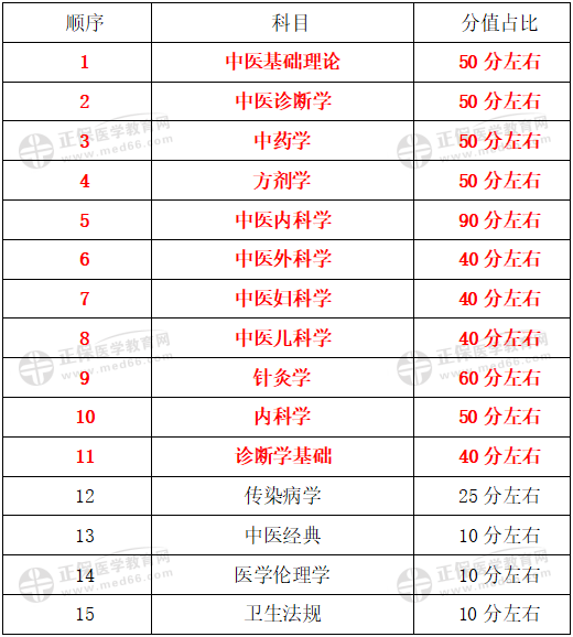以下為中醫(yī)執(zhí)業(yè)醫(yī)師科目分值比例,僅供參考: