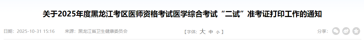黑龍江省2025年中醫(yī)執(zhí)業(yè)醫(yī)師(二試)考生速去打印準(zhǔn)考證!請(qǐng)相關(guān)考生及時(shí)打印準(zhǔn)考證,提前確認(rèn)考場(chǎng)安排,做好應(yīng)試準(zhǔn)備!