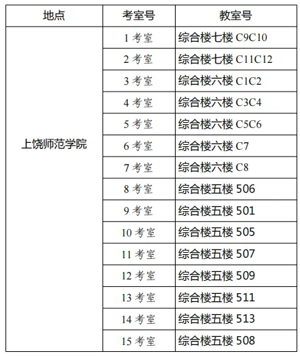 上饒考點(diǎn)考場地址:上饒市信州區(qū)志敏大道401號上饒師范學(xué)院綜合樓