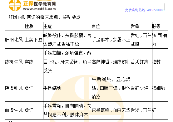 本題知識點:肝風內動四證的臨床表現(xiàn)、鑒別要點