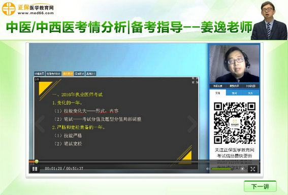 視頻主題:《姜逸老師談2016年中醫(yī)、中西醫(yī)醫(yī)師考情分析及2017年備考指導(dǎo)》