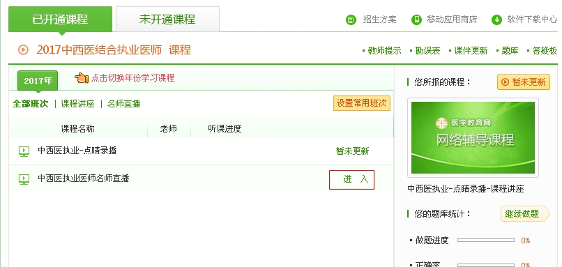 2、專業(yè)師資直播班學(xué)員點(diǎn)擊課程列表中的直播入口進(jìn)行查看。