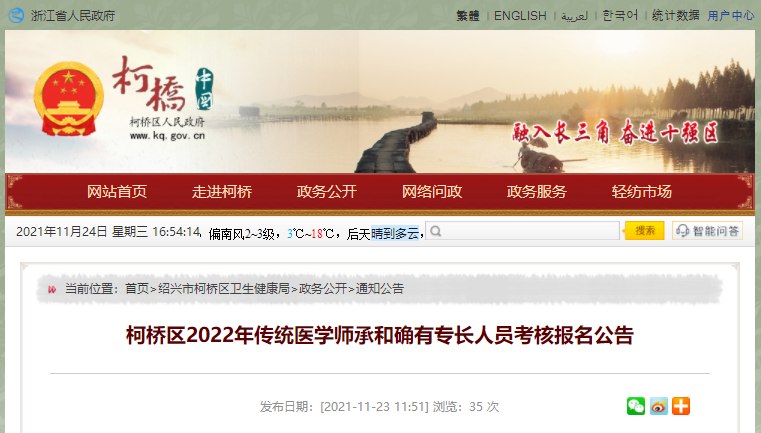 柯橋區(qū)2022年傳統(tǒng)醫(yī)學(xué)師承和確有專長(zhǎng)人員考核報(bào)名公告