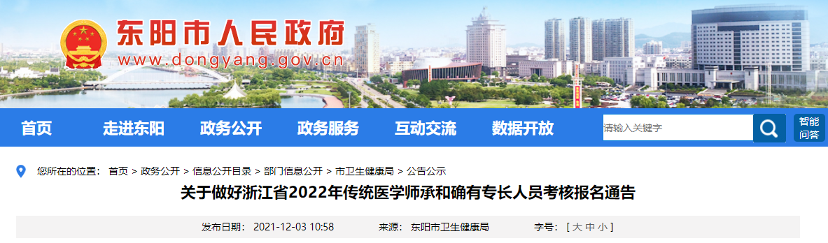 附件:《浙江省中醫(yī)藥管理局關于做好2022年傳統(tǒng)醫(yī)學師承和確有專長人員考核報名工作的通知》(浙中醫(yī)藥〔2021〕20號)(http://www.dongyang.gov.cn/art/2021/12/3/art_1229304590_3937380.html)