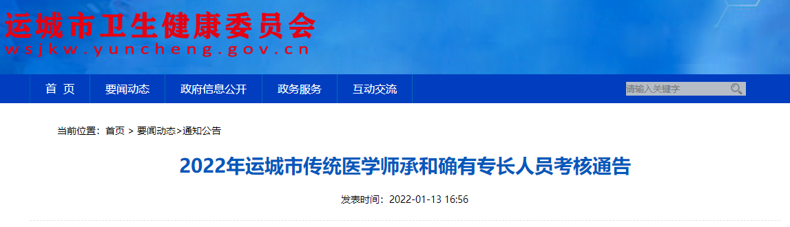 2022年運(yùn)城市傳統(tǒng)醫(yī)學(xué)師承和確有專長人員考核通告