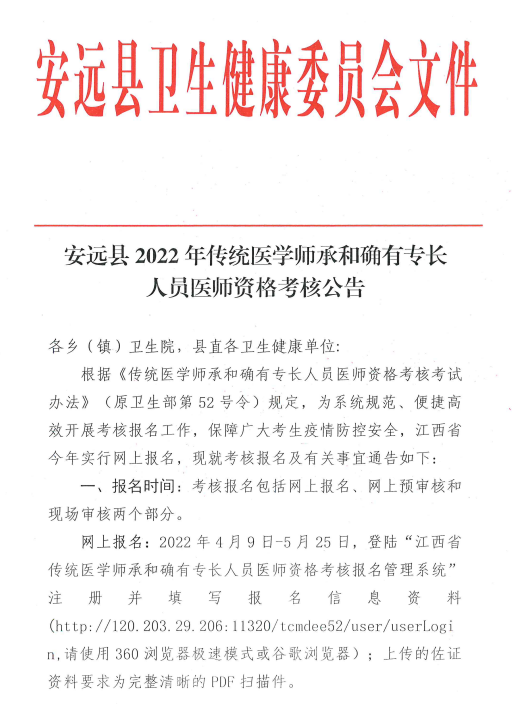 安遠(yuǎn)縣2022年傳統(tǒng)醫(yī)學(xué)師承和確有專長人員醫(yī)師資格考核公告
