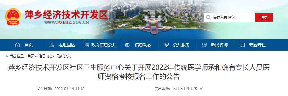 萍鄉(xiāng)經濟技術開發(fā)區(qū)社區(qū)衛(wèi)生服務中心關于開展2022年傳統(tǒng)醫(yī)學師承和確有專長人員醫(yī)師資格考核報名工作的公告