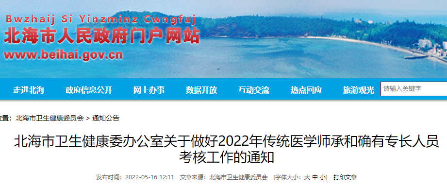 北海市衛(wèi)生健康委辦公室關(guān)于做好2022年傳統(tǒng)醫(yī)學(xué)師承和確有專長人員考核工作的通知